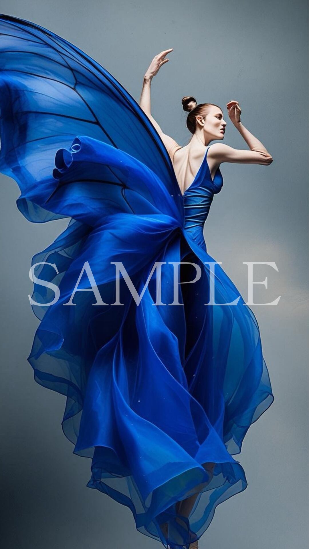 この待ち受け画像は、強い女性が美しい蝶のように躍動感あふれる形で描かれています。青い背景が広がり、アートの中で生き生きとした生命力を感じることができるでしょう。あなたのスマートフォンやタブレットにこの素敵なアートを取り入れ、日常に力強さと軽やかさをもたらしてくれます。